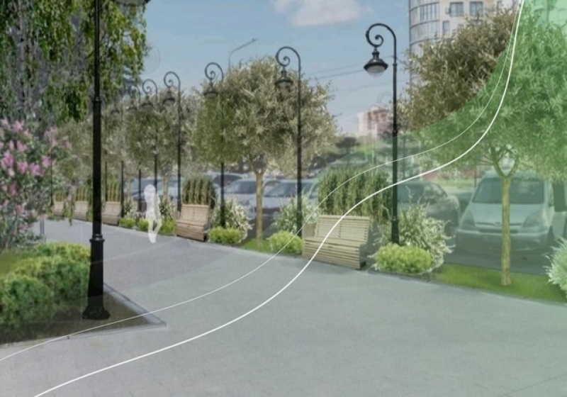 На улице Маршала Жукова, между домами № 76 и 78, то есть на участке между ул. Маяковского и Масленникова хотят организовать прогулочную зону.