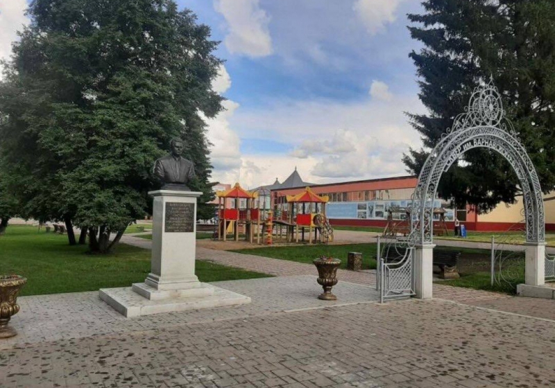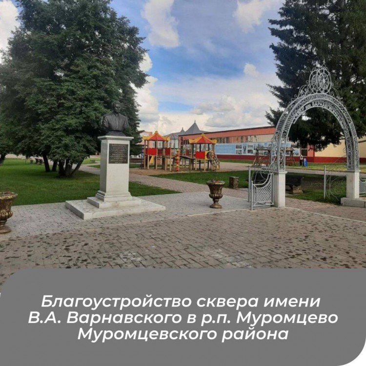 В поселке Муромцево Муромцевского района обновлен сквер, посвященный Владимиру Варнавскому, с установкой памятной арки и бюста.
