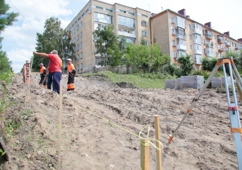 Подрядная организация уже приступила к демонтажу старых покрытий и полностью разобрала старую лестницу по улице Короленко. На ее месте появится новая каскадная лестница из Южно-Султаевского гранита, оборудованная спуском для маломобильных граждан.