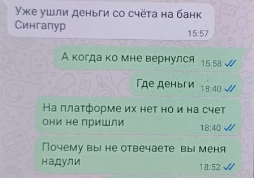 Коллега согласилась помочь и перевела на счета злоумышленников еще 900 тысяч рублей — также кредитных. В процессе транзакций сомнения у нее возникали, но собеседник настойчиво убеждал: действовать необходимо без промедлений.