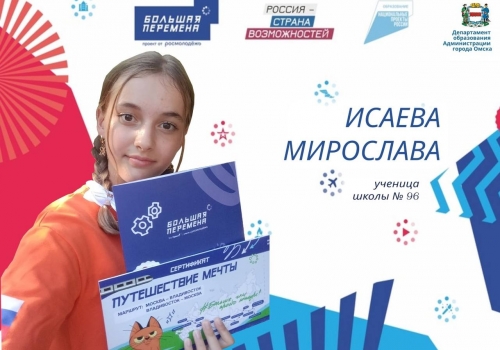 Мирослава Исаева, представляющая школу № 96 города Омска, стала победительницей финала VI сезона Всероссийского конкурса «Большая перемена» среди учеников 5–7 классов.