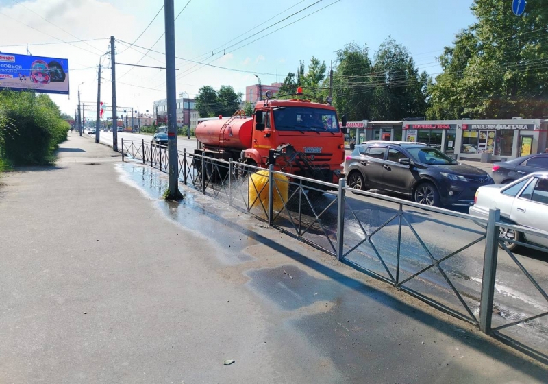 Работы включали механизированную очистку пространства вдоль бордюров и мытье ограждений.