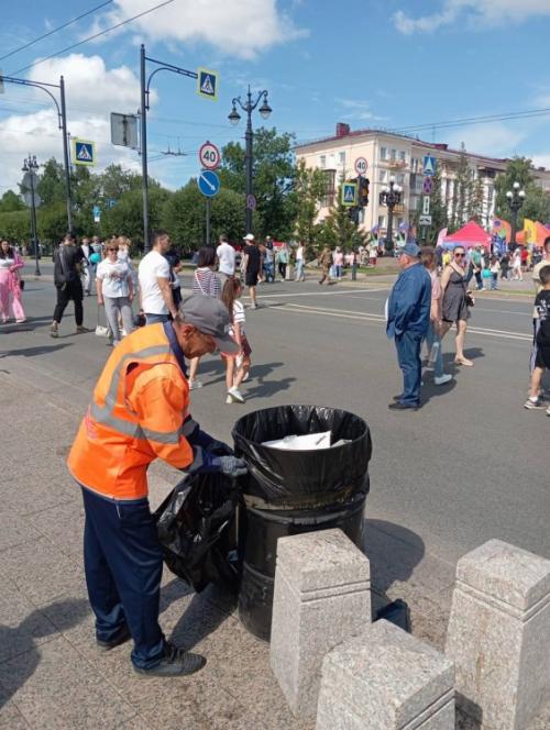 Сотрудники городского УДХБ, убравшие видовой мусор, опустошали урны и контейнеры, а также следили за чистотой фонтанов. Об этом рассказал мэр города Омска Сергей Шелест в своем телеграм-канале.
