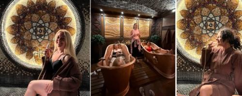 Здесь прекрасные леди искупались в бассейне с прозрачной минеральной водой — она подаётся напрямую из термального источника. В бане «Расул» покрыли себя несколькими видами глины для поддержания красоты и упругости кожи. А те, кто любит погорячее, грелись в ароматной травяной парной.