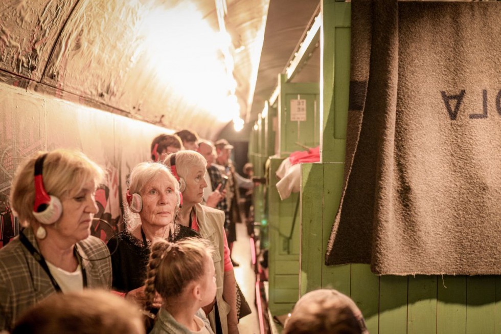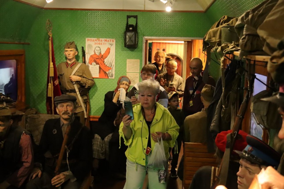Гости с интересом проходили по вагонам музея, слушая рассказ главной героини.
