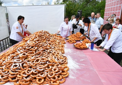 На празднике был создан большой арт-объект из более 3 тысяч ароматных свадебных калачей, приготовленных по рецепту Валентины Бондаревой.