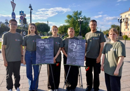 В омском Сквере Дружбы прошла церемония возложения цветов в память о Николае Ковалёве и Давиде Соколове — волонтёрах «Общероссийского Народного фронта», погибших 16 августа 2024 года в Глушковском районе Курской области.