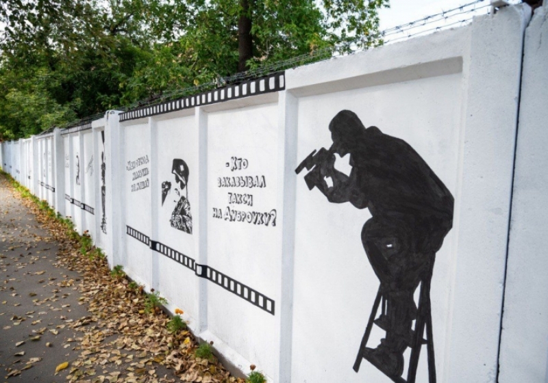 Новый арт-объект, посвященный творчеству советского кинорежиссера Леонида Гайдая, украсил ограждающую конструкцию Киновидеоцентра в Омске. Официальное открытие прошло накануне, 27-го августа.