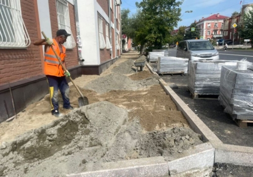 На ул. Герцена финальный этап работ включает устройство гранитного тротуара и установку поребрика. Полностью готовы технический тротуар, выравнивающий и верхний слои дорожного покрытия. В настоящее время ведется укладка тротуарной плитки. На данном участке протяженностью 936 метров выполнено более 90 процентов от общего объема работ.