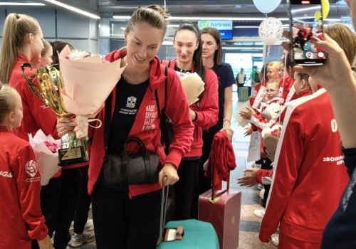 Сегодня, 8 сентября, «Омичка» вернулась в Омск, где команду встретили юные воспитанники спортивных школ, болельщики, спонсоры и журналисты.