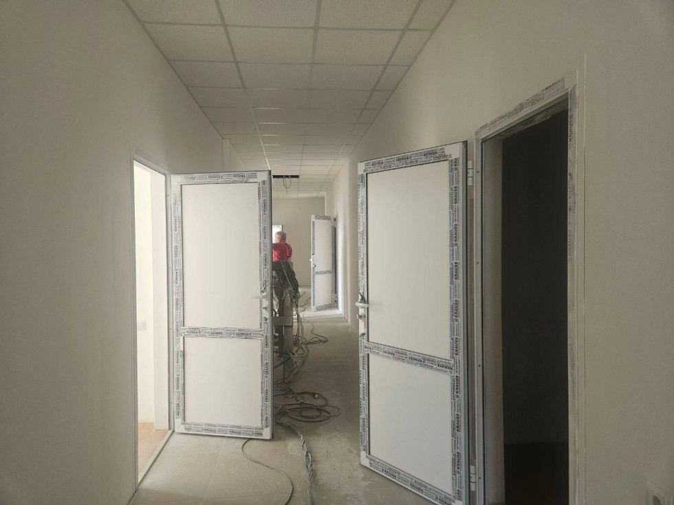 Кроме того, полностью выполнены работы по наружным сетям. Так, проложены кабельные линии, ливневая канализация и уличное освещение. Подаётся заявка на ввод в эксплуатацию энергопринимающей установки.