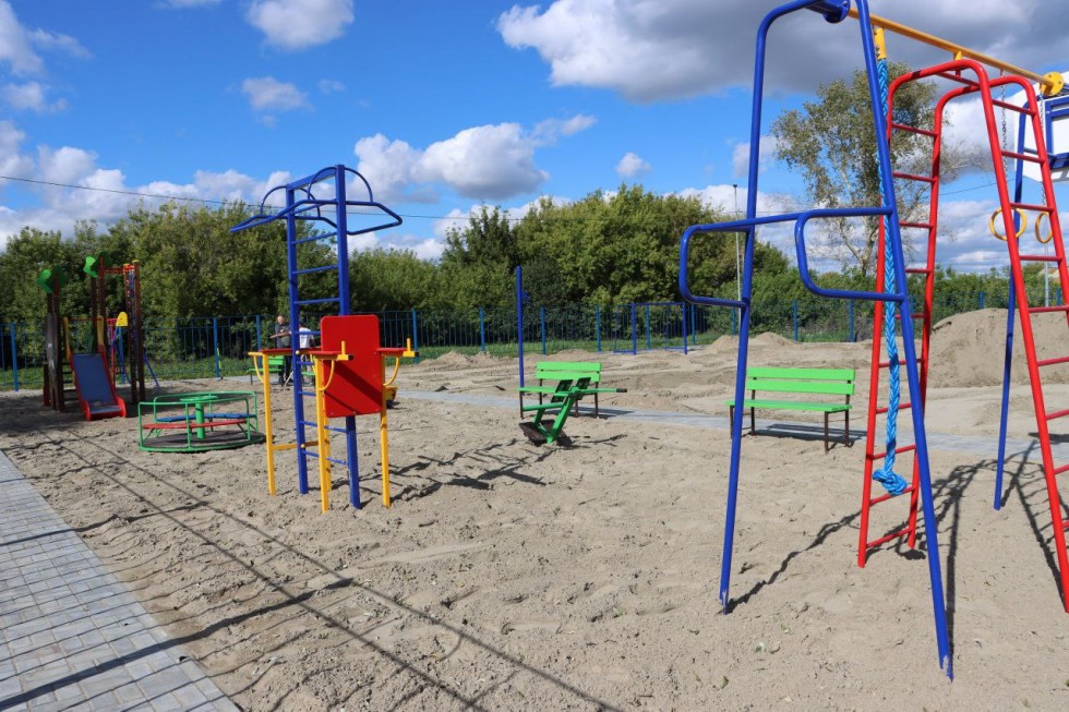 Так, в селе Заря Свободы Марьяновского района обустроили детскую спортивную площадку с мини-футбольным полем, универсальной спортплощадкой и современными тренажёрами для физической подготовки. Для удобства жителей проложены плиточные дорожки.