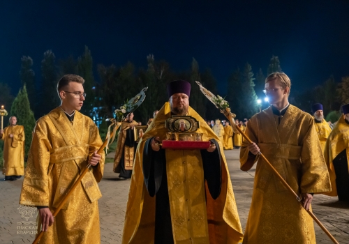 Встреча святыни продолжилась Крестным ходом и молебном, в завершение которого глава Омской митрополии огласил слово Святейшего Патриарха Московского и всея Руси Кирилла по случаю 100-летия со дня блаженной кончины патриарха-исповедника.
