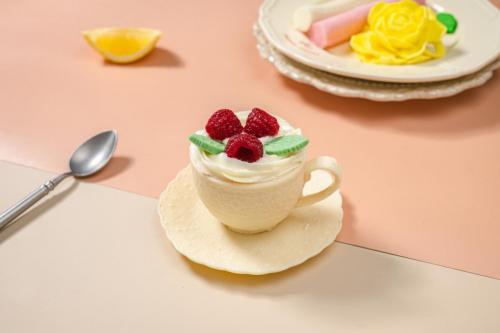 Пирожные «Чайная пара с маршмеллоу» и «Чайная пара Ягоды»: Оригинальные десерты в форме изящных чашек, сочетающие различные текстуры и вкусы — от шоколадно-кофейного тирамису до бисквита «красный бархат» с малиновым конфи.