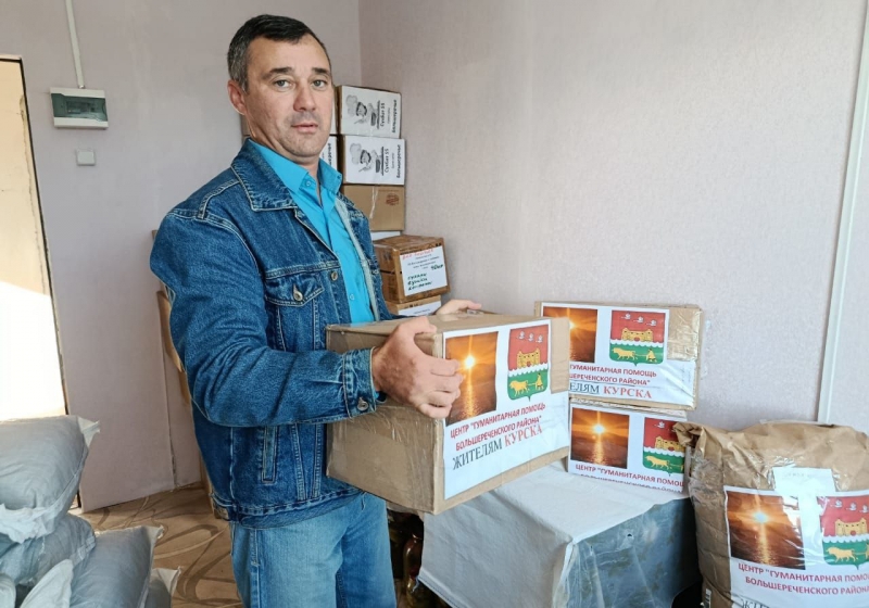 Так, в центре «Гуманитарная помощь Большереченского района» идет подготовка новой партии посылок с продуктами и необходимыми товарами для жителей Курска.