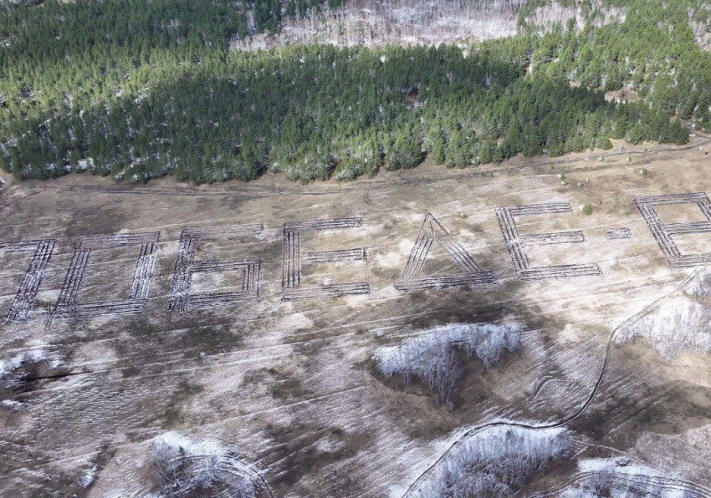 Стоит сказать, что высаженную из деревьев надпись можно прочитать с большой высоты: размер геоглифа составляет 545 на 70 метров.