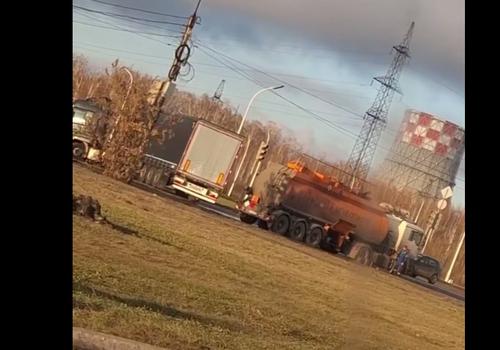 В результате ДТП бензовоз был поврежден и топливо потекло по асфальту в сторону поселка Ростовка. Из-за столкновения двух многотонных машин движение транспорта встало на несколько часов.