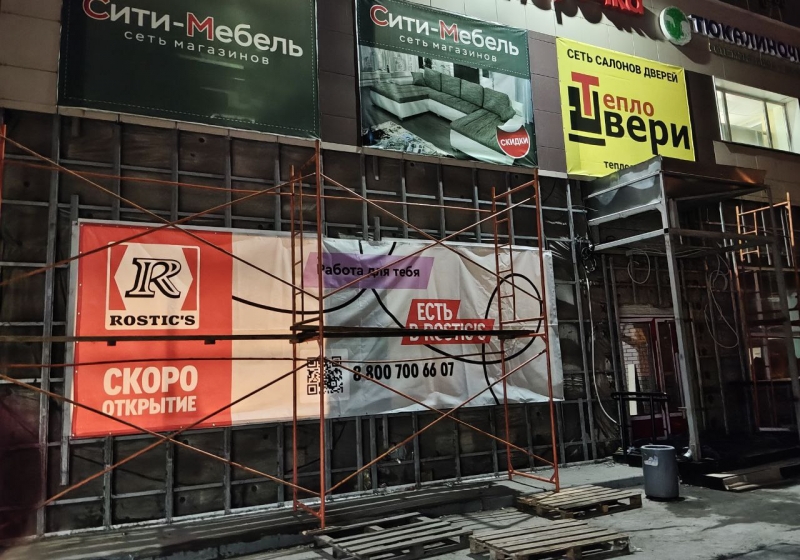 Как рассказали местные жители, работы по оформлению нового ресторана быстрого питания ведутся внутри и снаружи здания. По их словам, подготовка здесь идет уже несколько месяцев. Однако сейчас на торговом комплексе можно увидеть баннер Rostic’s, на котором написано «Скоро открытие». Точная дата начала работы новой точки не сообщается.
