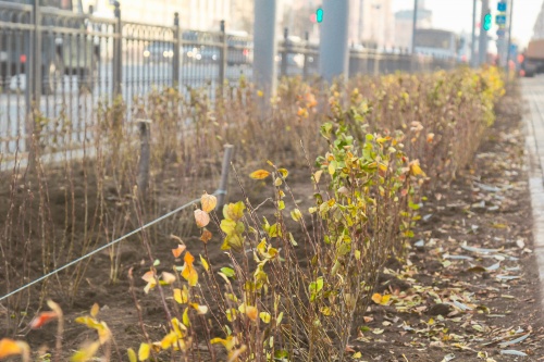 Как рассказала начальник отдела озеленения УДХБ Яна Бахта, на освобожденном участке начата закладка новой, многорядной живой изгороди из кизильника блестящего.