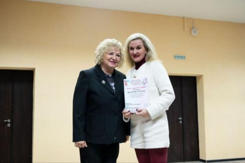 Она получила подарок — книгу о музыке и сладости — от супруги Николая Сергеевича Якуничева, Натальи Статкевич.