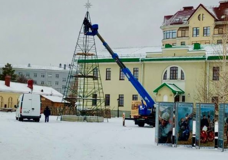 В рамках праздничной подготовки ведутся работы по сборке каркаса искусственной елки, завершится которые должны уже на следующей неделе. Параллельно будут вестись работы по монтажу световых элементов.