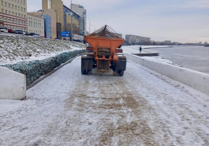 Основное внимание уделяется обработке дорожной инфраструктуры противогололедными материалами.