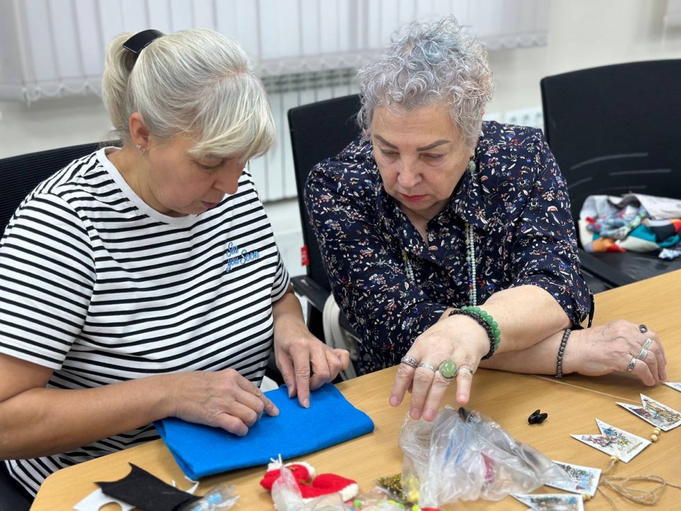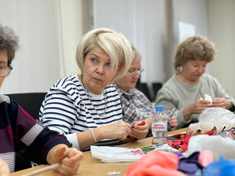 «О существовании объединения я узнала от своего координатора и, поскольку я творческий человек, заинтересовалась. Пришла, а здесь уже идет подготовка к Новому году. Это меня особенно вдохновило, ведь я родилась в канун праздника. Влилась в коллектив и включилась в процесс: предложила подготовить заготовки дома на швейной машинке, а на встрече всем вместе их набить. Так и сделали, участницы поделились тканью.