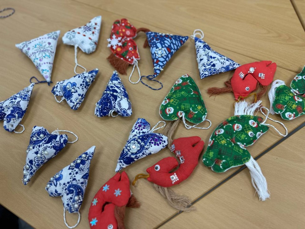 Часть из них уже украшает ёлку в филиале фонда, а некоторые поделки отправят в детские дома города Стаханова в Луганской Народной Республике.