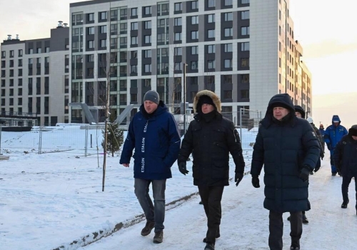 Губернатор Омской области Виталий Хоценко и мэр Омска Сергей Шелест сегодня побывали в жилом квартале «Зеленая река» и проверили строительство нового детского сада.