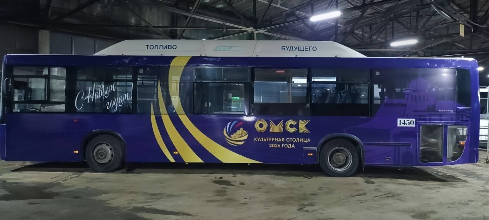 В Омске на маршруты вышли первые автобусы, оформленные в новогодней тематике с логотипом конкурса «Культурная столица года». Два НефАЗа с номерами 801 и 1450 начали работу в декабре 2025 года на различных городских направлениях.