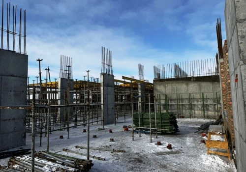 Строительство школы в селе Одесское Омской области, реализуемое в рамках федерального проекта «Современный облик сельских территорий», идёт по графику. Подрядчик (ООО «АРТ РемСтрой») завершил фундаментные работы, практически закончил устройство монолитной плиты первого этажа и приступил к прокладке внутренних инженерных сетей.