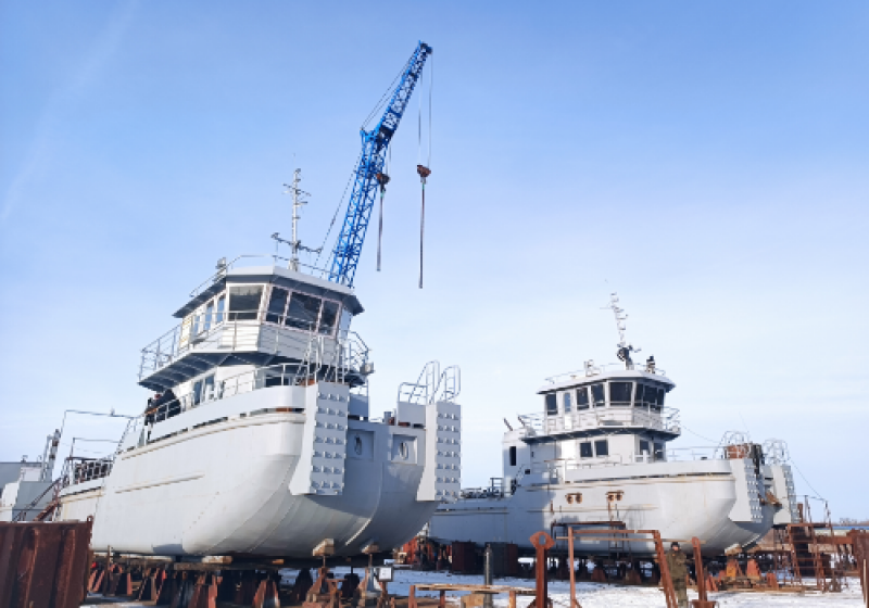 Строительство двух буксиров-толкачей проекта №Т20 продолжается в Омске. Техническое наблюдение за ходом работ ведет Обь-Иртышский филиал Российского Классификационного Общества.