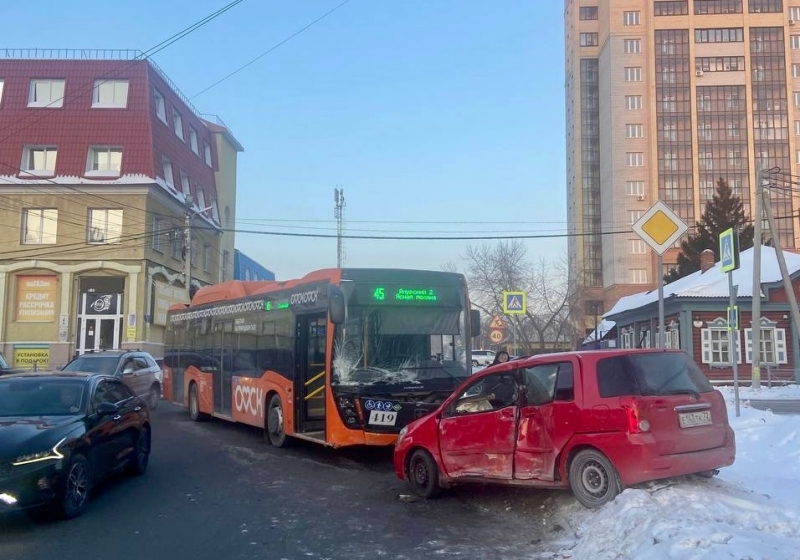 В районе дома № 33 по улице Гусарова 64-летняя водитель автомобиля «Тойота» при выезде со второстепенной дороги не предоставила преимущество в движении и столкнулась с автобусом (маршрут № 45), в салоне которого находились более 10 пассажиров.