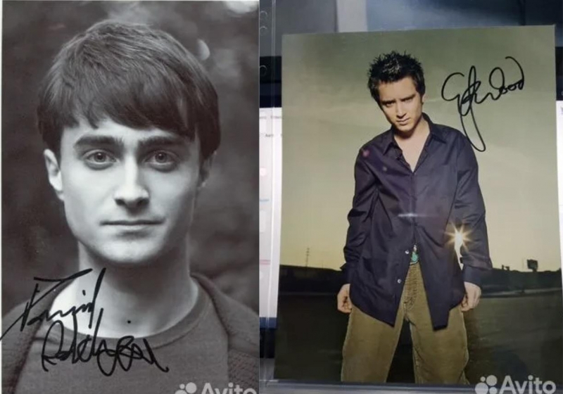 По информации продавца, в продаже представлены фотокарточки с рукописными подписями исполнителей ролей в фильмах «Гарри Поттер» и «Властелин колец» — Дэниела Рэдклиффа и Элайджи Вуда.