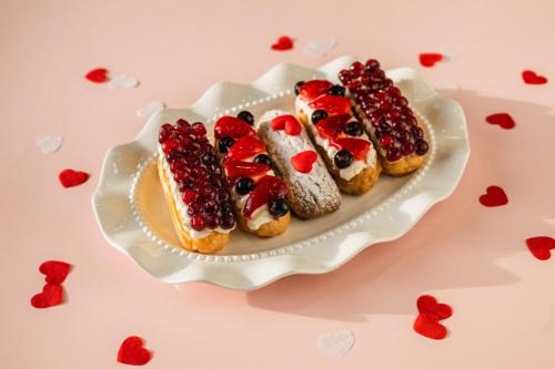 Эклеры ягодные с декором сердце