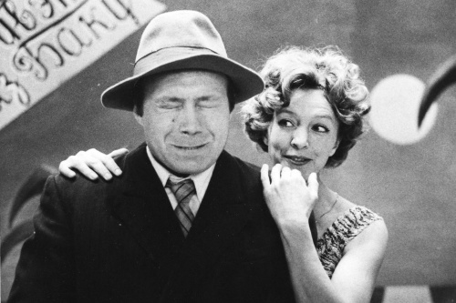 «Любовь и голуби» 1982 г. реж. Г. Тростянецкий, Элеонора Кремель в роли Раисы Захаровны, Юрий Кузнецов в роли Васи. Фото из театрального архива