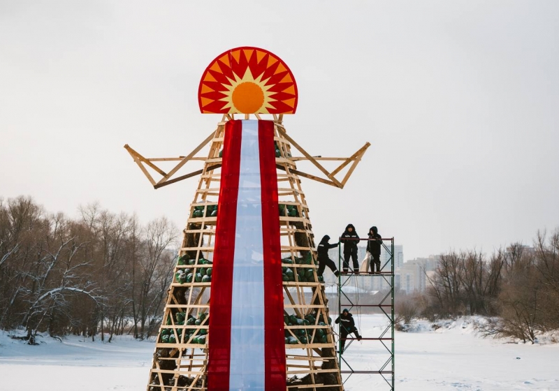 В Омске в парке «Зеленый остров» началась подготовка к празднику проводов зимы.