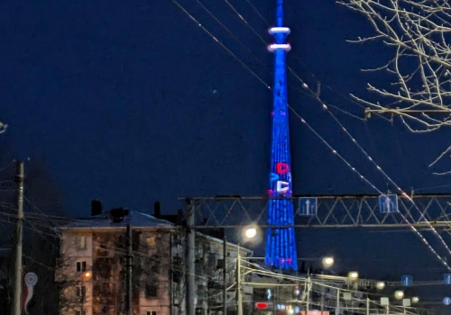 На омской телебашне сегодня засиял логотип «Работа молодёжи России».