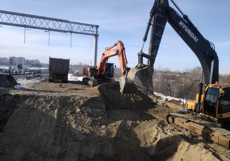 Работы по модернизации ливневой канализации также развернуты на подходах к объекту. Со стороны Левобережья строители сформировали котлован глубиной восемь метров для монтажа новых дождеприёмных и смотровых колодцев, а также трубопроводов.