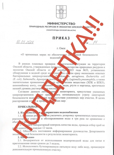Кроме того, в фальшивом приказе утверждается, что в водоемах обнаружены болезнетворные микроорганизмы, а уровень растворенного кислорода достиг критически низких отметок. Вся эта информация не имеет ничего общего с реальностью.