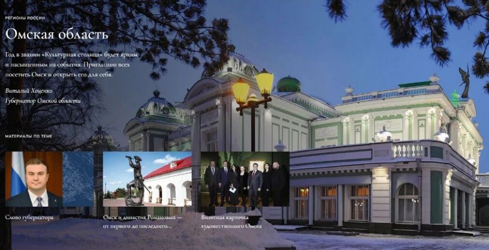 «Год в звании «Культурная столица России» будет ярким и насыщенным на события. Приглашаю всех посетить Омск и открыть его для себя», — заявил в интервью журналу губернатор Виталий Хоценко.