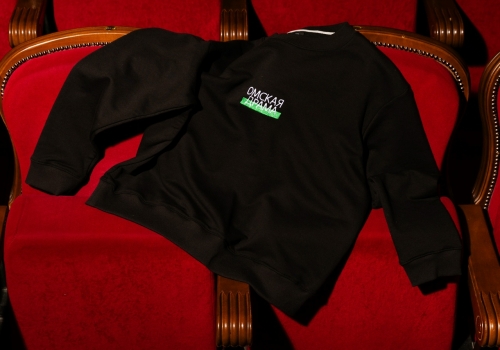 Совместная коллекция получила название «Омская драма». Ключевыми акцентами стали надпись ОМСКАЯ ДРАМА и горизонтальная зеленая полоса — цветовой код, который отсылает к узнаваемому цвету фасада театра. Изделия выполнены в черном цвете.