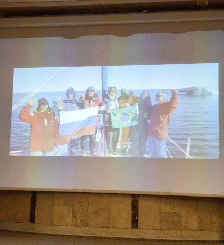 Участники слушали рассказ о сложностях ледовой проводки по Северному морскому пути, о том, как встречали путешественников в арктических посёлках. И о тёплом приёме в бразильском Сальвадоре.