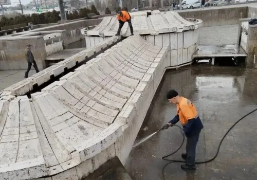 Работы ведутся поэтапно на всех запланированных объектах. На промывке каждого фонтана задействованы два‑три специалиста. В настоящее время очистка уже проводится в сквере Дзержинского, сквере А. Т. Алтунина, а также на ряде других городских территорий.