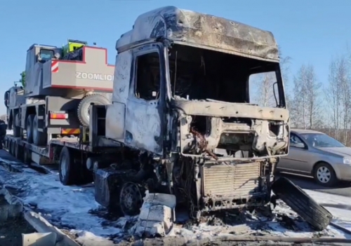 26-летний водитель, управляя автомобилем «Мерседес» с полуприцепом, перевозил кран. В ходе движения произошёл разрыв переднего колеса, что привело к возгоранию кабины грузовика. В результате инцидента никто не пострадал. Машина же сильно повреждена.