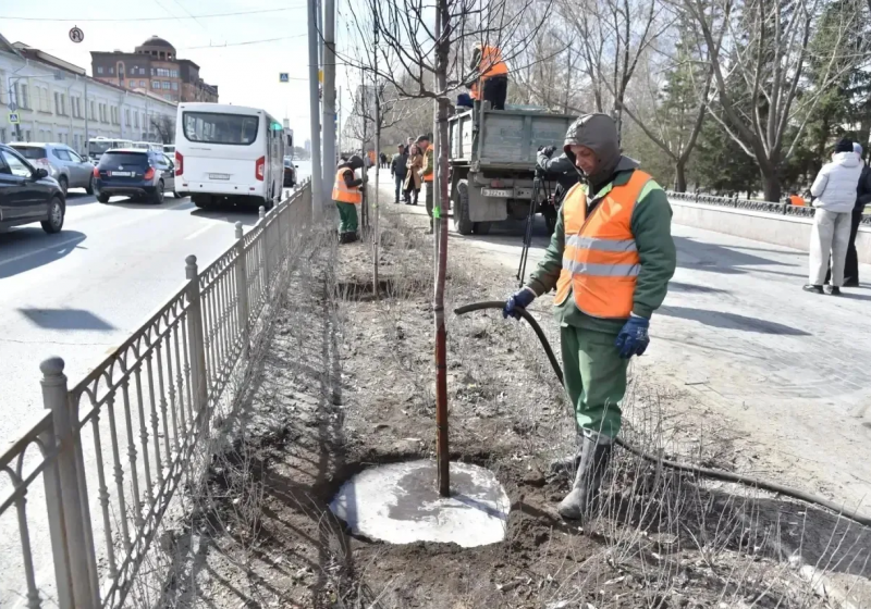 В Омске началось весеннее озеленение города. К этой работе приступили специалисты Управления дорожного хозяйства и благоустройства.