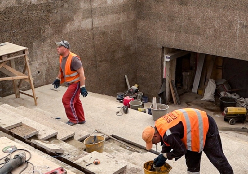 «Отделку выполняем с применением Южно-Султаевского гранита, он добывается на Урале. По своим свойствам он долговечный и, что особенно важно в условиях нашей сибирской зимы, морозоустойчивый. Ступени также будут облицовываться тем же материалом, плитами, толщиной 5 сантиметров. Высота подступёнка — 10 сантиметров. То есть каждая ступень будет 15 сантиметров высотой, что удобно для пешеходов»., — рассказал представитель подрядной компании Арис Джадов.