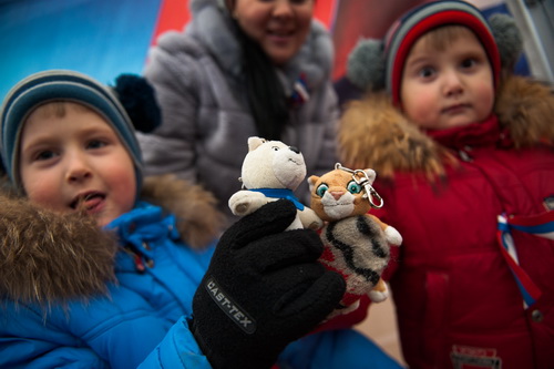 Особенно полюбились плюшевые символы Олимпиады-2014 ребятишкам.