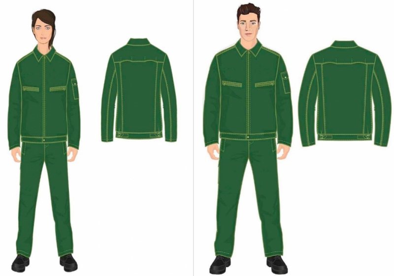 Каждый костюм будет состоять из куртки и брюк зелёного цвета. К одежде предъявлены строгие технические требования: материал должен быть на 100 % из хлопка, а также предусматривать наличие светоотражающих элементов и водоотталкивающей отделки.
