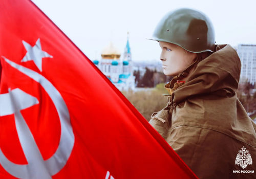 Ко Дню Победы образ пожарного Василия, размещённого на омской каланче, по уже сложившейся многолетней традиции переодели в военную форму советского солдата.
